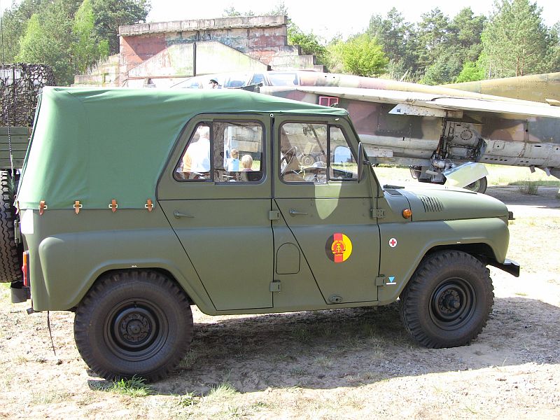 Da konnte der Führungs-UAZ nur noch eine Gefahrbremsung einleiten und 3 weitere UAZ schafften es nicht und fuhren auf.