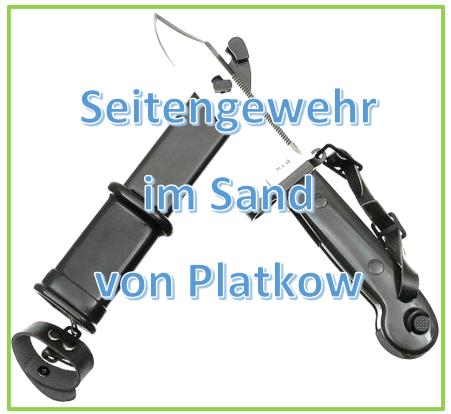 Das Laufen war anstrengend, da der Sand sehr lose war. Aber auf einmal schaufel‘ ich mit dem rechten Stiefel ein Seitengewehr von einer Kalaschnikow aus dem Sand, blitzschnell bücke ich mich und das Gerät
