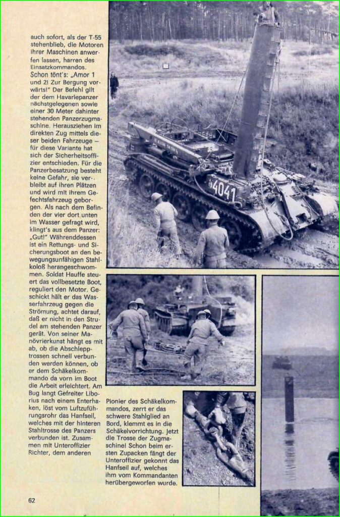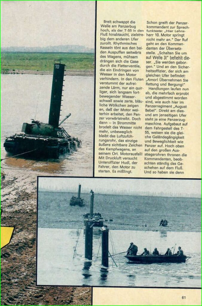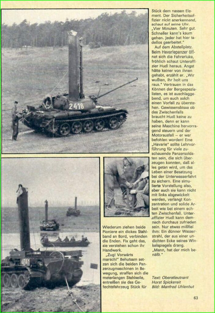 Bataillonsstärke, die an der Übung beteiligt waren, erfuhr ich nach dem Abschluss der Übung. Alle waren wie aufgedreht und man merkte, dass so eine Unterwasserfahrt wohl doch nicht ganz ungefährlich war. Die Panzer waren alles T55.